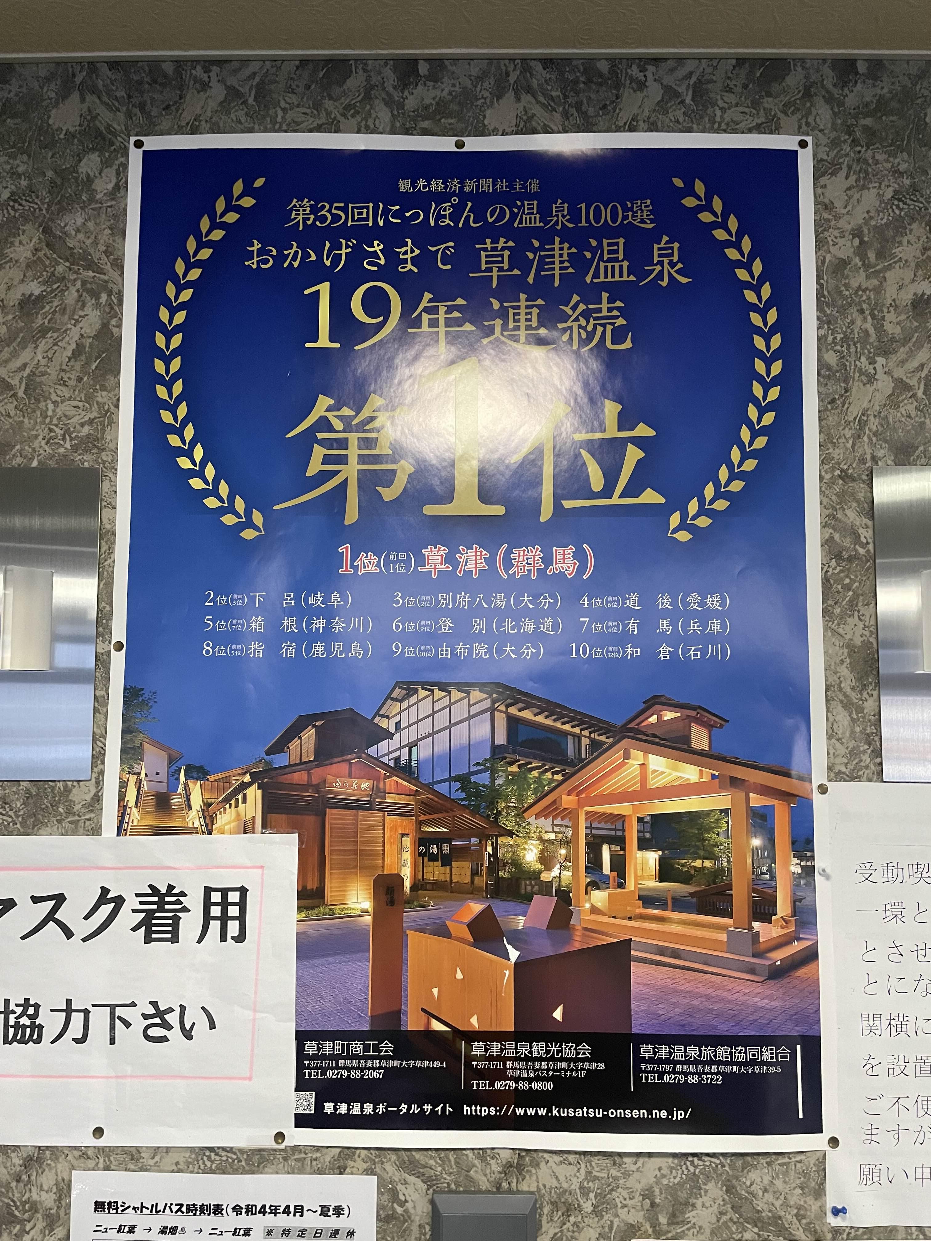 그나저나 쿠사츠 온천이 19년 연속 1위라고 한다.. ㅎ ㄷ ㄷ