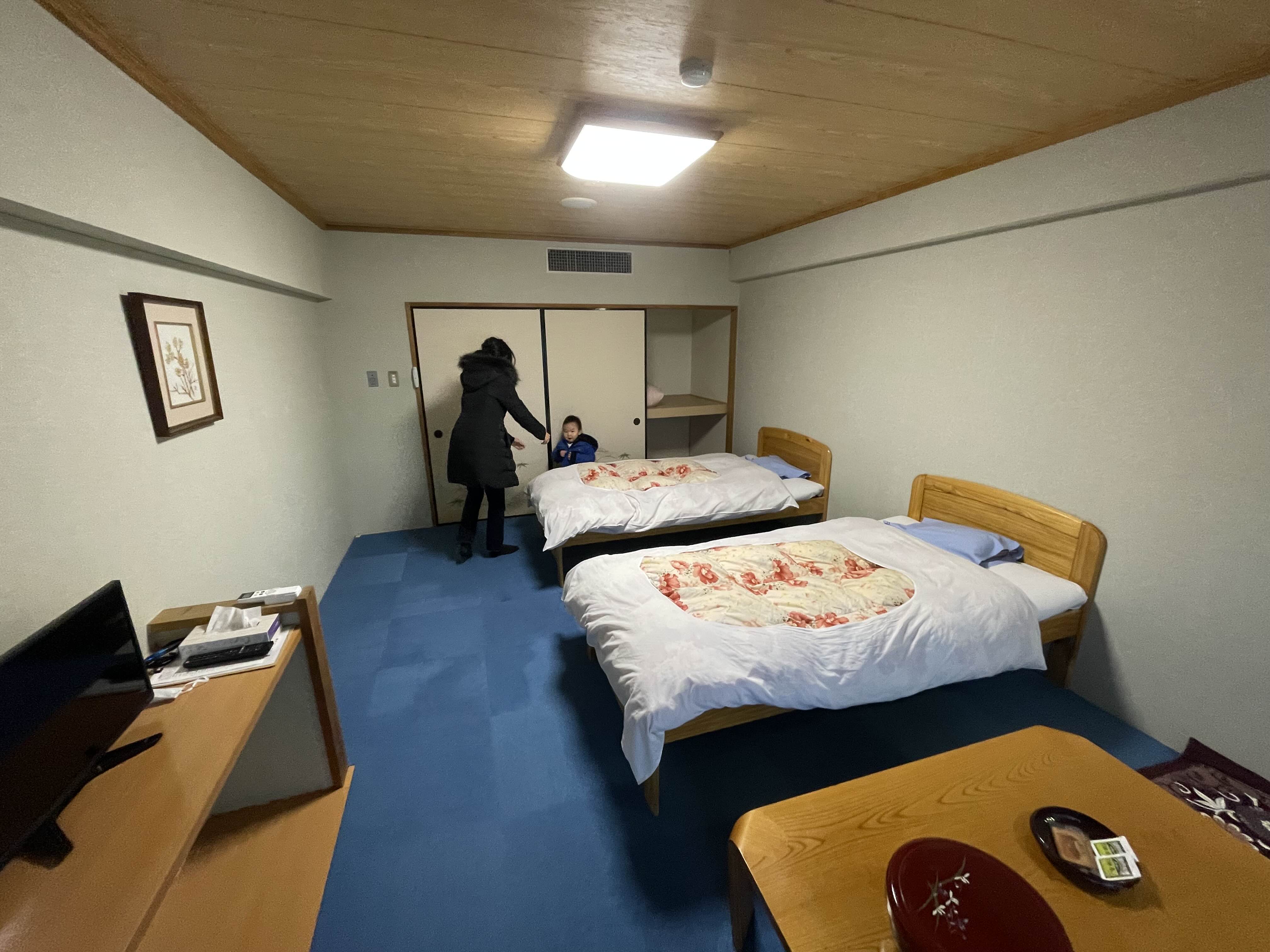 다다미 방은 침대 없이 바닥에 이불 깔고 잘 수 있는 구조일 것 같다