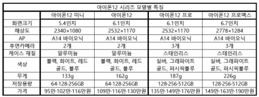 아이폰12 모델별 특징