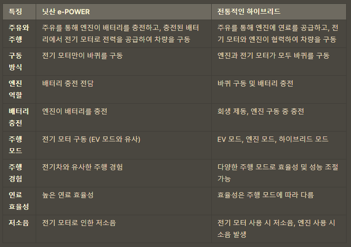 닛산의 e-POWER는 하이브리드 차량 기술의 일종으로, 내연 기관 엔진과 전기 모터를 결합한 시스템입니다.