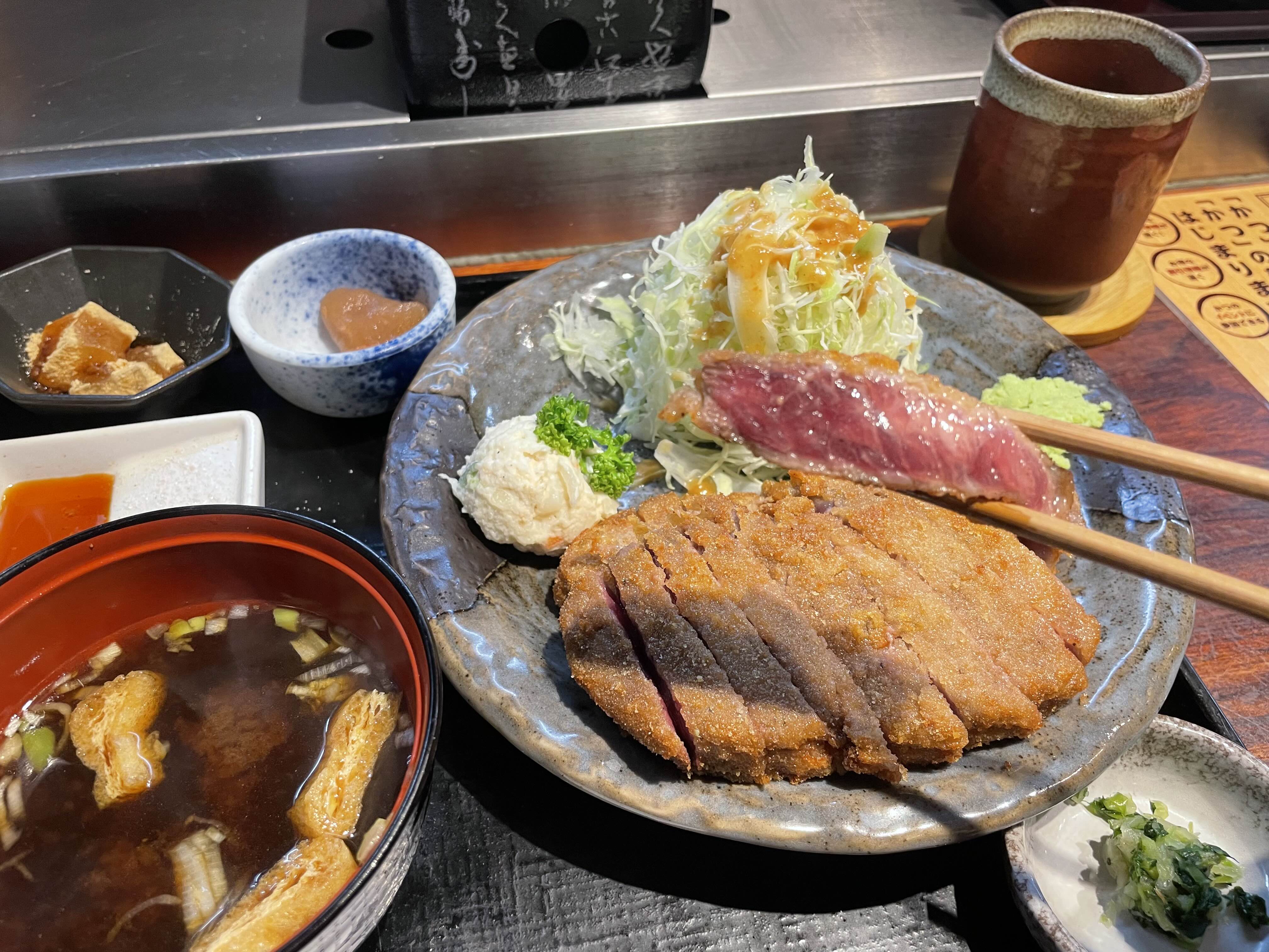 고민되는 한국인들으 ㄹ위해 규카츠 정식이 깔끔하게.. ㅋㅋ