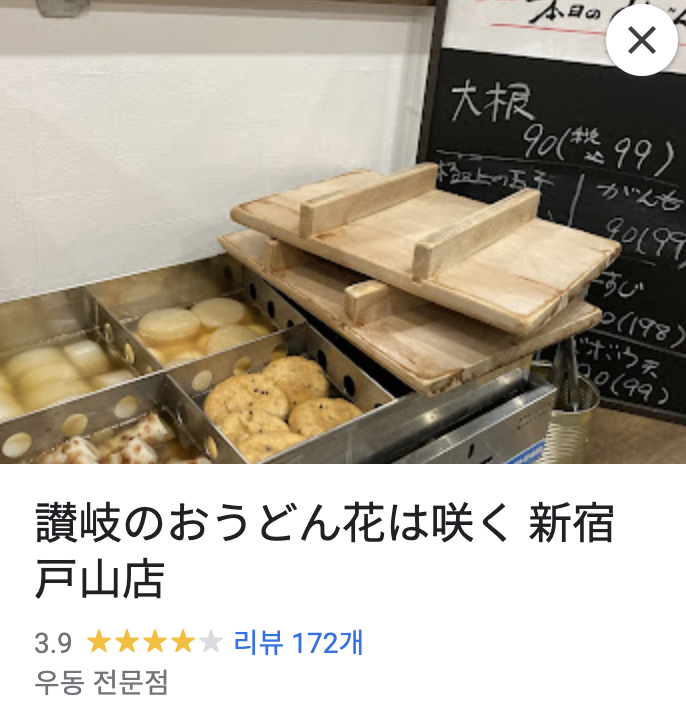 알고보니 이 우동집이 신주쿠 인근에 가까이 2개가 있었다