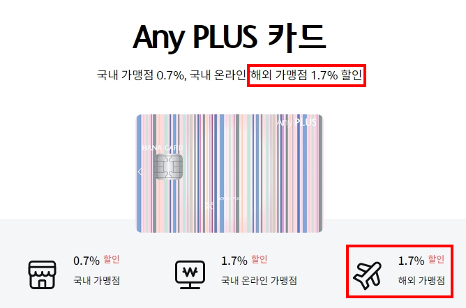 아래 Any PLUS 하나카드보다 조건이 더 좋다.