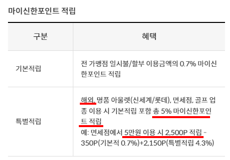 해외가맹점 5% 신한포인트 적립