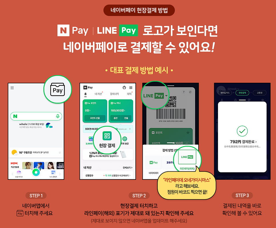 이제, 일본에서도 네이버페이 됩니다. 55만 라인페이 가맹점에서 네이버페이 하세요!