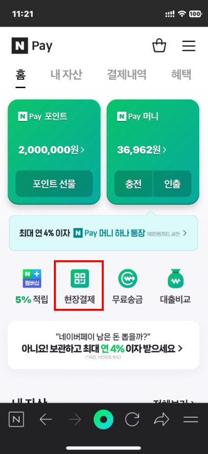 네이버페이 -> 현장결제