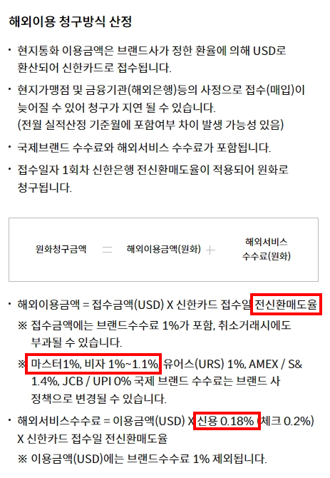신한카드는 해외결제 1.18% 수수료 부과 (마스터 비자 1% + 신한카드 0.18%)
