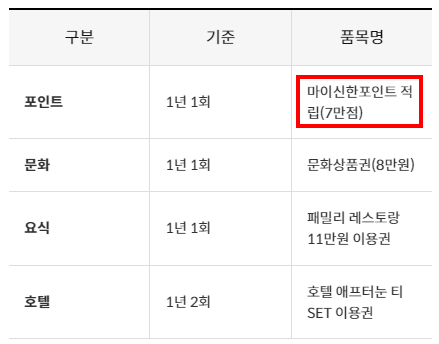 연회비는 10.5만원이나, 신한포인트로 7만점을 돌려받으니 실질부담은 3.5만원인셈