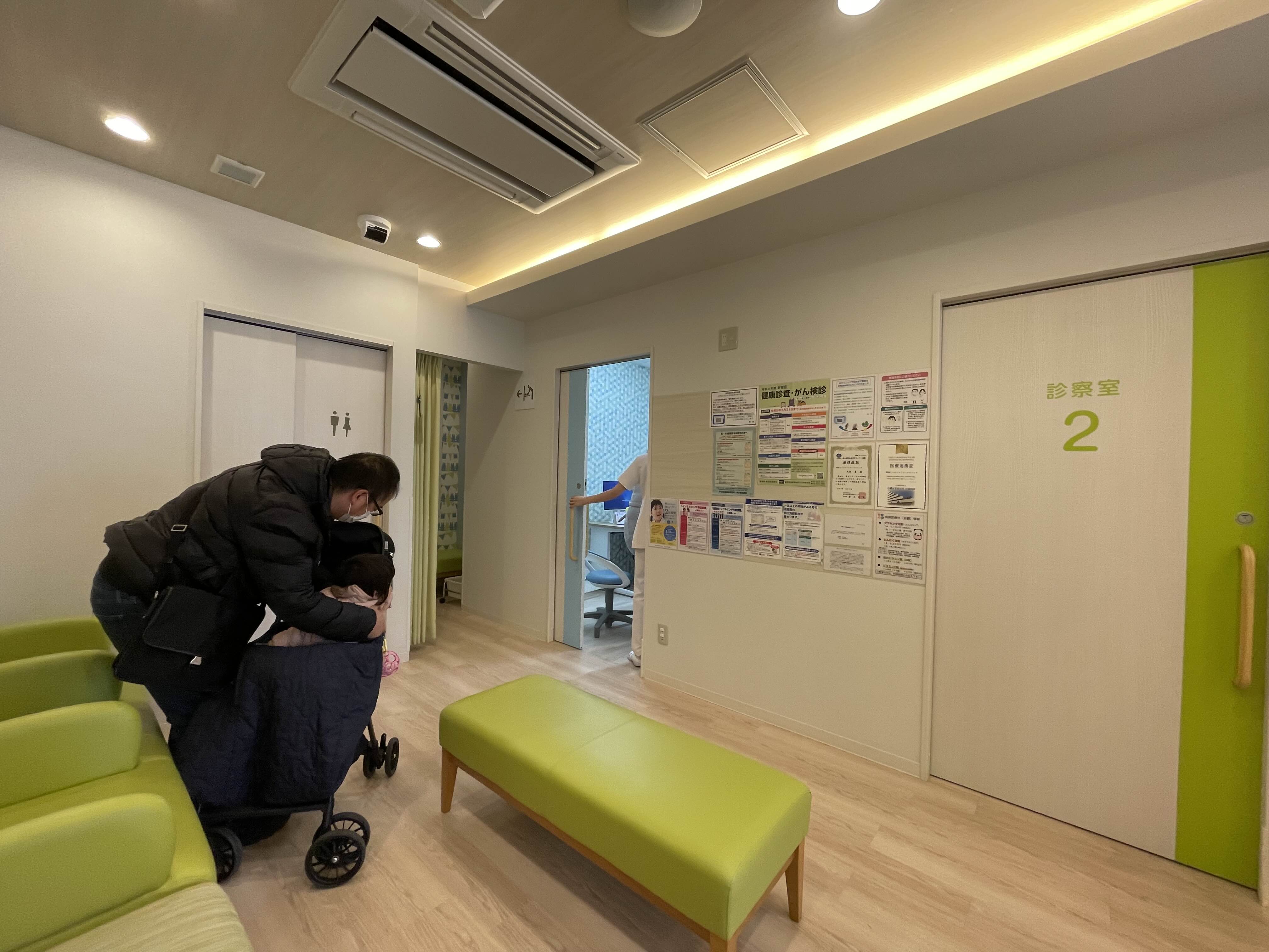 진료실 앞에 화장실과 기저귀 교환대가 있다