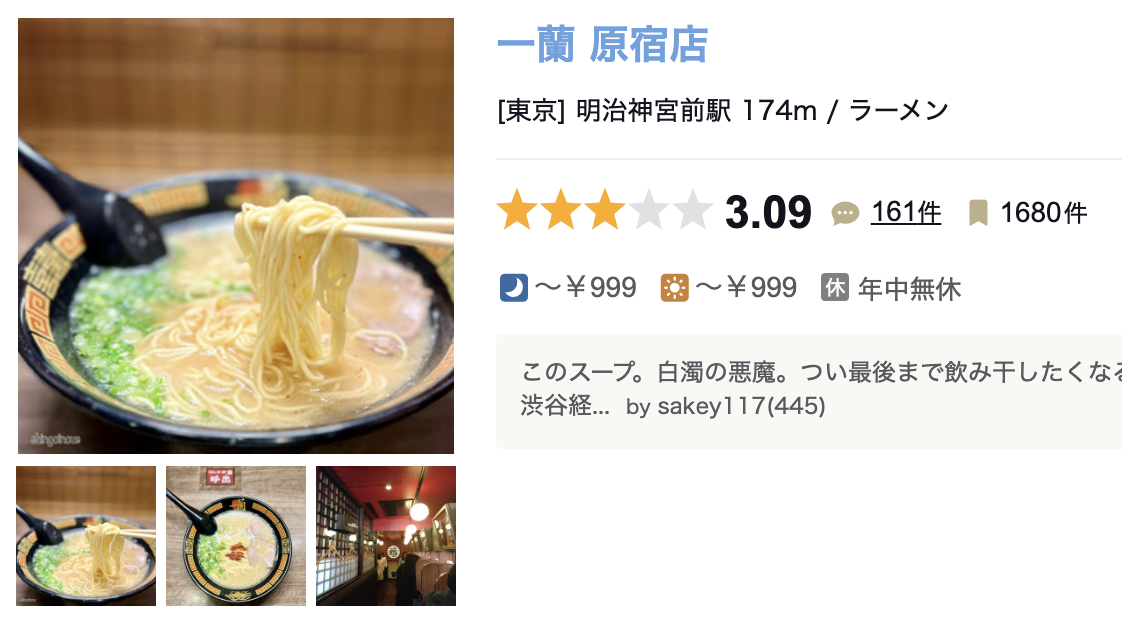 一蘭 原宿店 (明治神宮前/ラーメン)