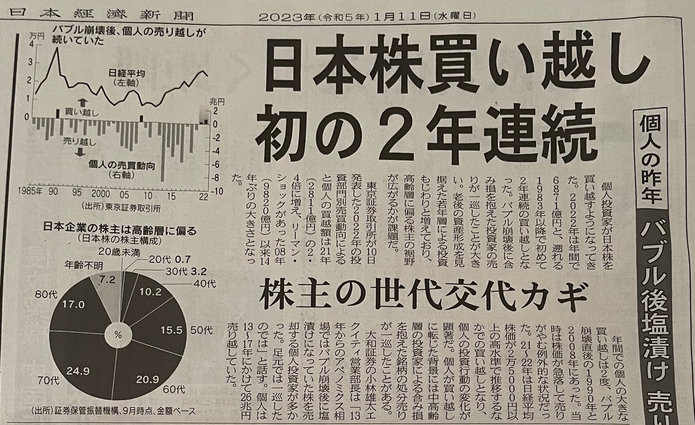 2022년 연간으로 6,871억엔으로, 붕괴되었던 1983년 이후 처음으로 2년 연속 매수세.