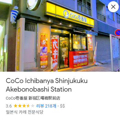 CoCo Ichibanya Shinjukuku Akebonobashi Station · 일본 〒162-0065 Tokyo, Shinjuku City, Sumiyoshicho, 6−3 ヤマギシコ