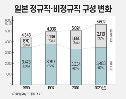 일본의 비정규직 임금은 정규직의 60% 수준으로 알려져 있다.