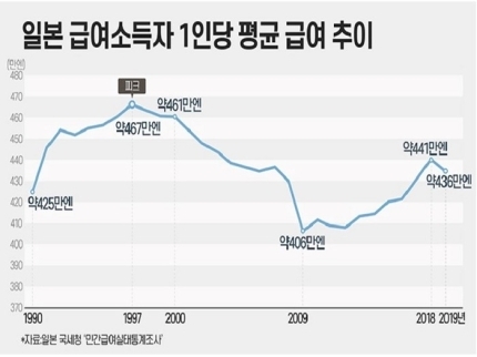 [한중일 톺아보기-65] ※ '한중일 톺아보기'는 한·중·일을 중심으로 아시아에서 일어나는 크고 작은 이슈를 살펴보는 주간연재코너입니다. "20년 넘도록 월급이 그대로다." 근래 일본에서 이 같