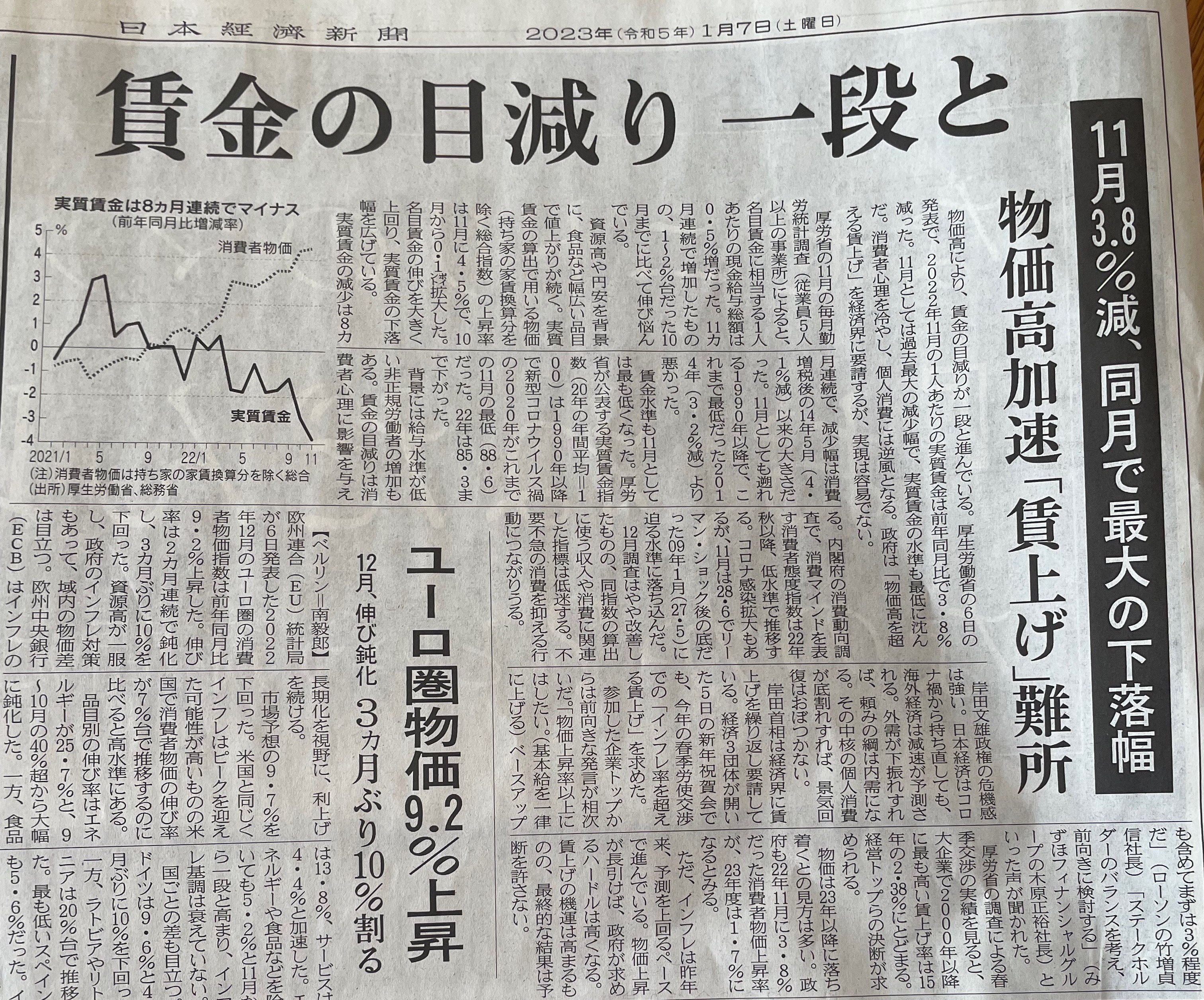 명목 임금의 증가를 크게 윗돌아 실질 임금의 하락폭을 넓히고 있다.