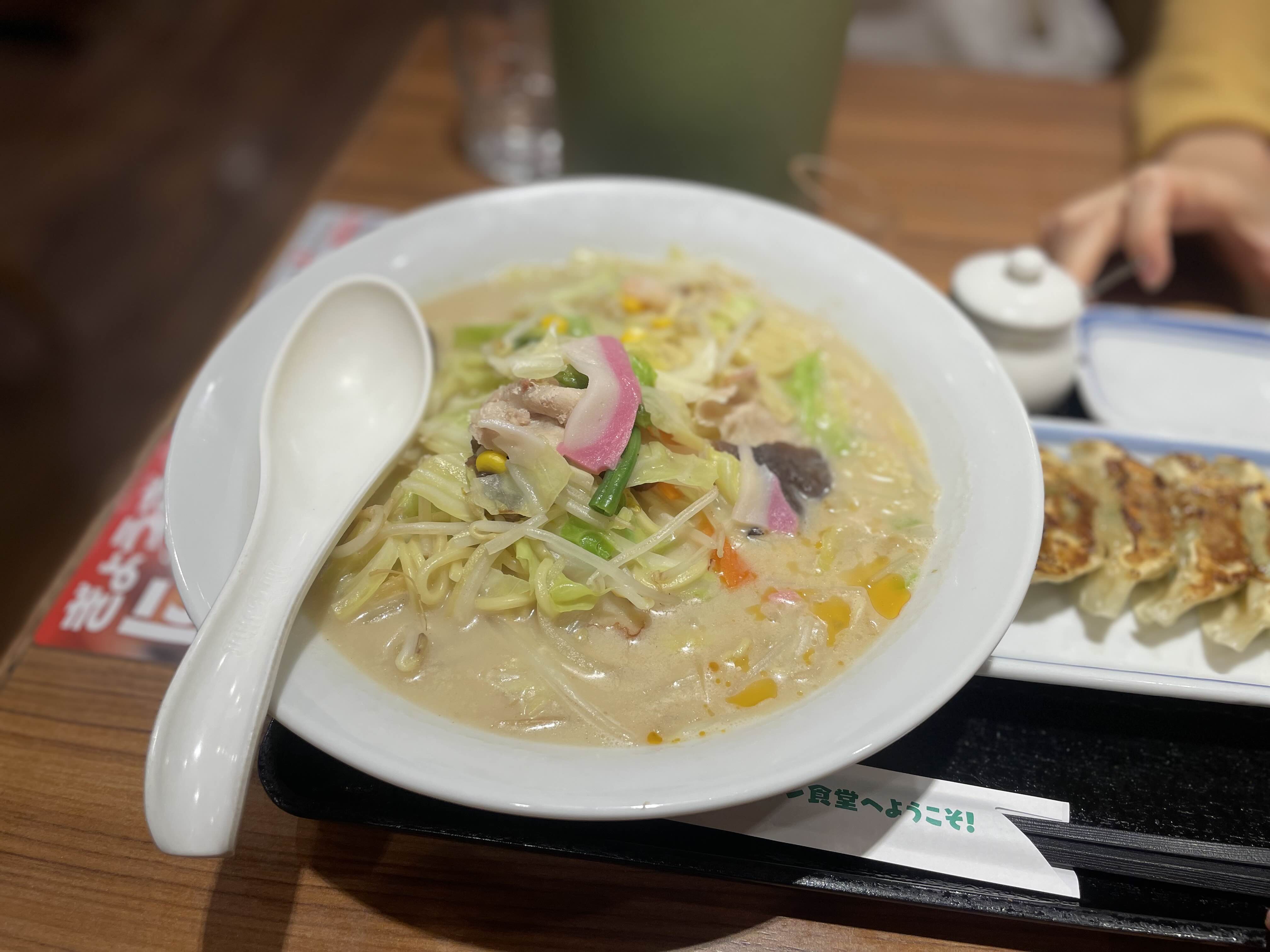 짬뽕과 교자를 1000엔 미만으로 세트로 먹을 수 있다.