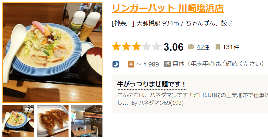 リンガーハット 川崎塩浜店 (大師橋/ちゃんぽん)