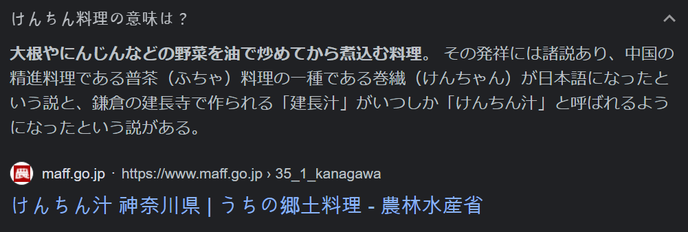 가마쿠라의 겐쵸지에서 만들어지는 '겐쵸지루'가 어느새 '켄친지루'로 불리게 되었다는 설이 있다.