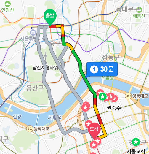 네이버 지도 기준으로 30분이 발생한다고 나온다.