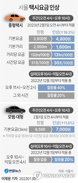 2022년 2월 1일부터 서울 택시요금은 인상되었다.