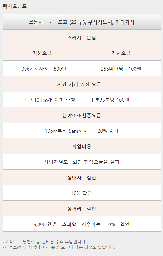 일단은 일본의 요금 체계를 보면, 기본요금 500엔, 1,096m 까지 주행,