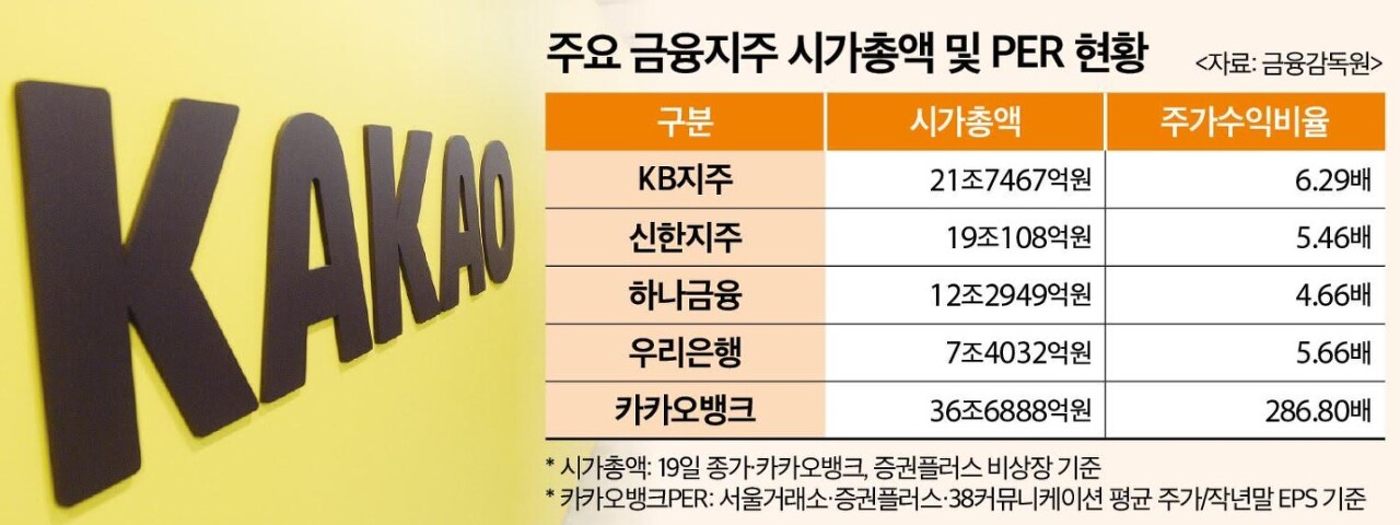 KB금융의 순이익이 3조원인 것에 비해 카카오는 1조원은 커녕 1~2천억원의 순이익을 내는 것으로 봐서