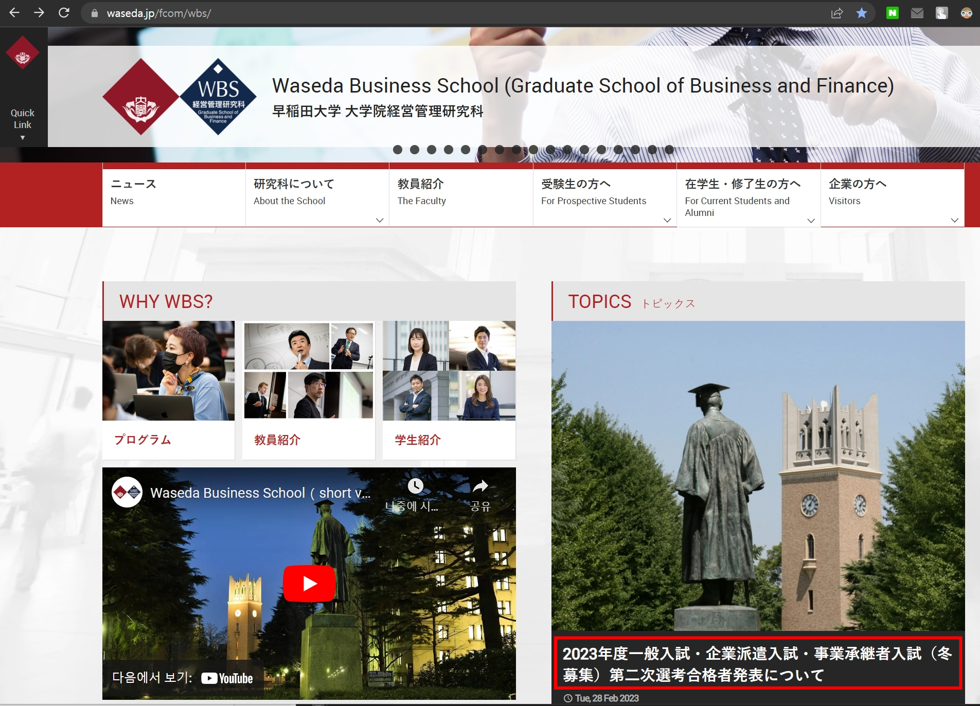 와세다 야간 MBA 지원하기 | 지원서류 | 지원 자격 | Waseda Business School