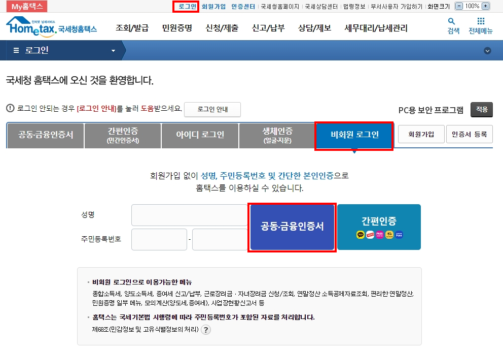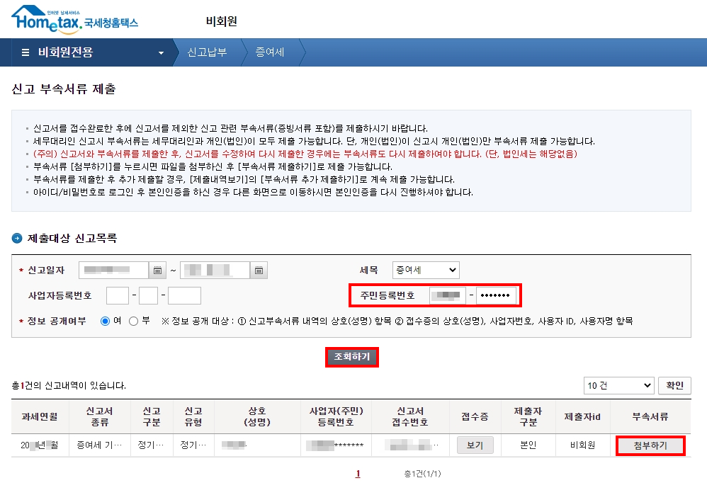 주민등록번호 입력 -> 조회하기 -> 첨부하기
