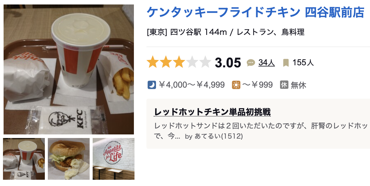하지만 그런 KFC도 평점은 매우 낮다.. ㅋㅋ