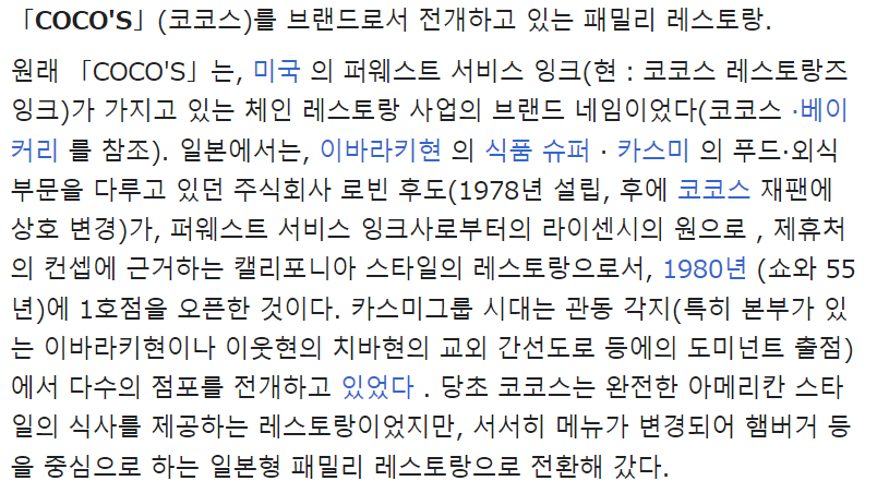코코스는 도쿄 시내에는 없는 것 같은데 외곽으로 살짝 나올때 잠시 들르기 좋은 곳인것 같다.