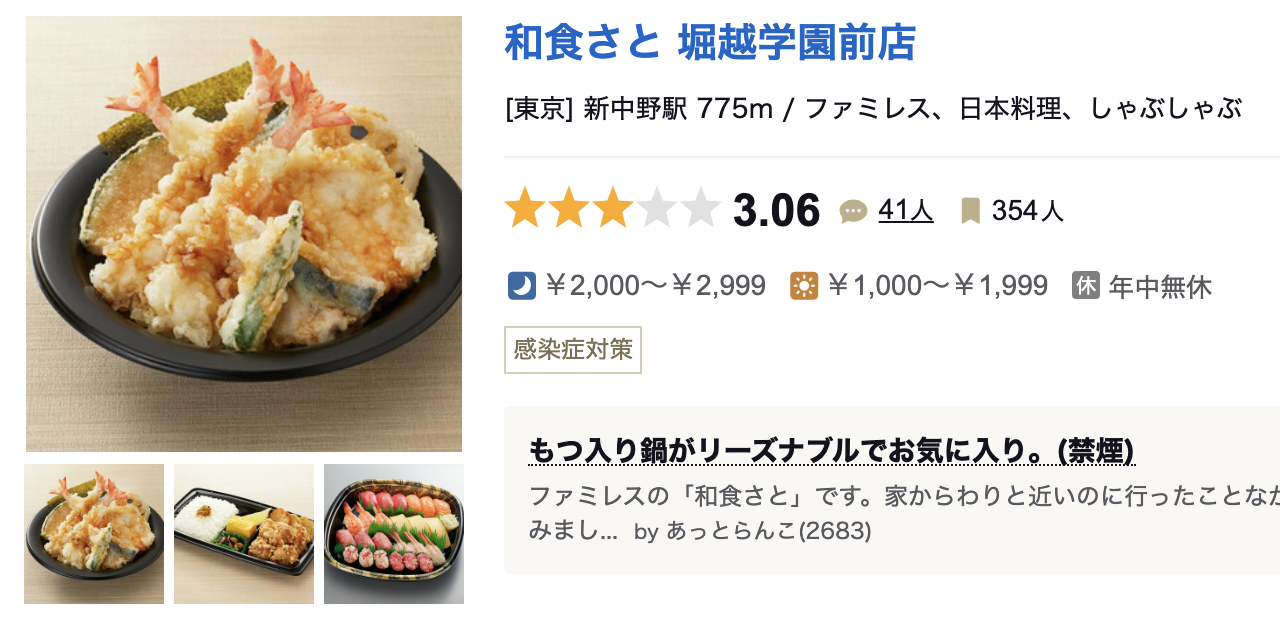和食さと 堀越学園前店 (新中野/ファミレス)