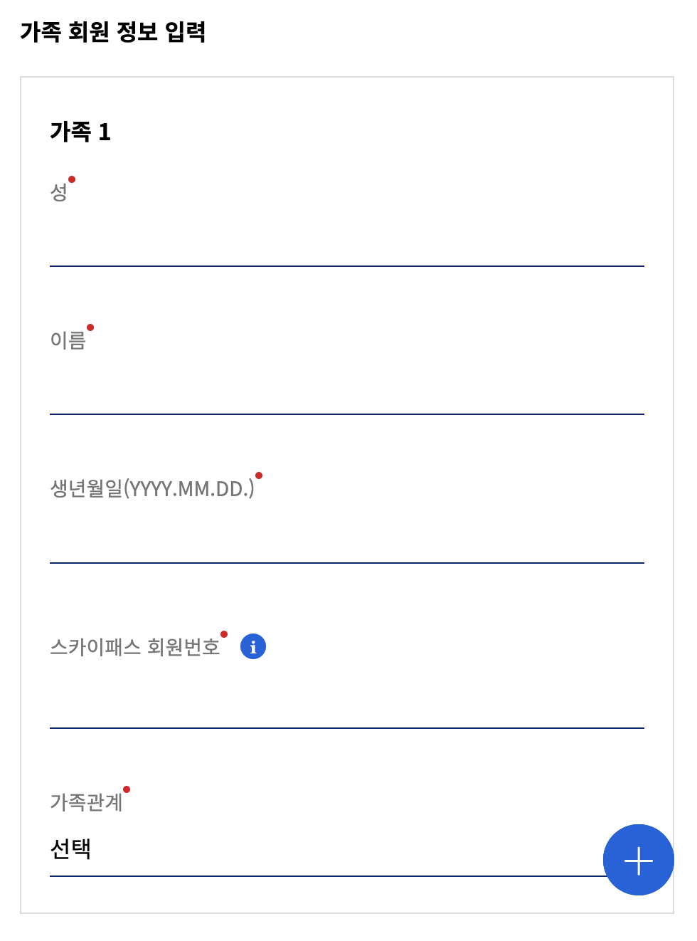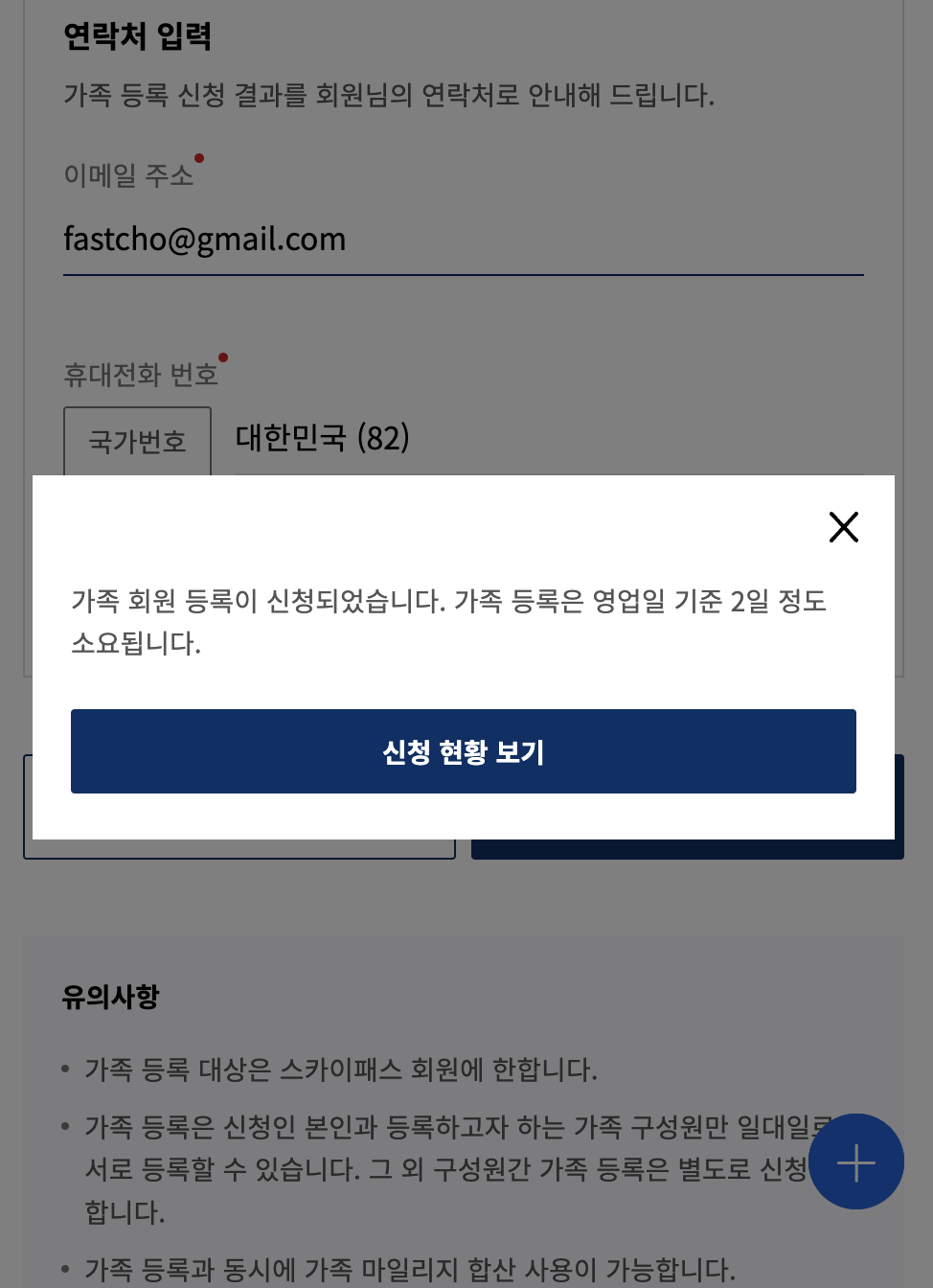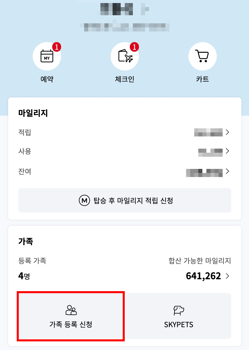 일단 부모 아이디로 대한항공 로그인 후 가족 등록 신청
