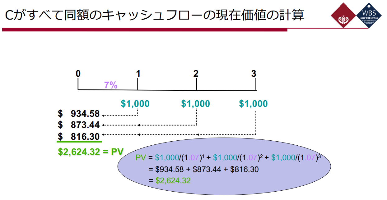 C가 모두 동일한 금액의 Cash Flow의 현재가치 계산