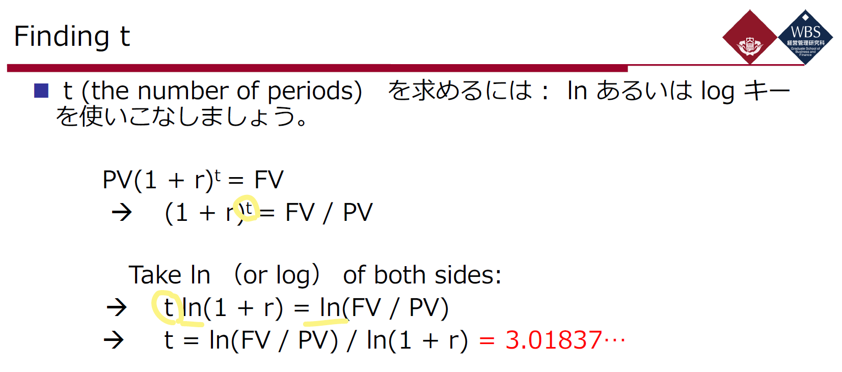 ln(1.3333) = t x ln(1.1)