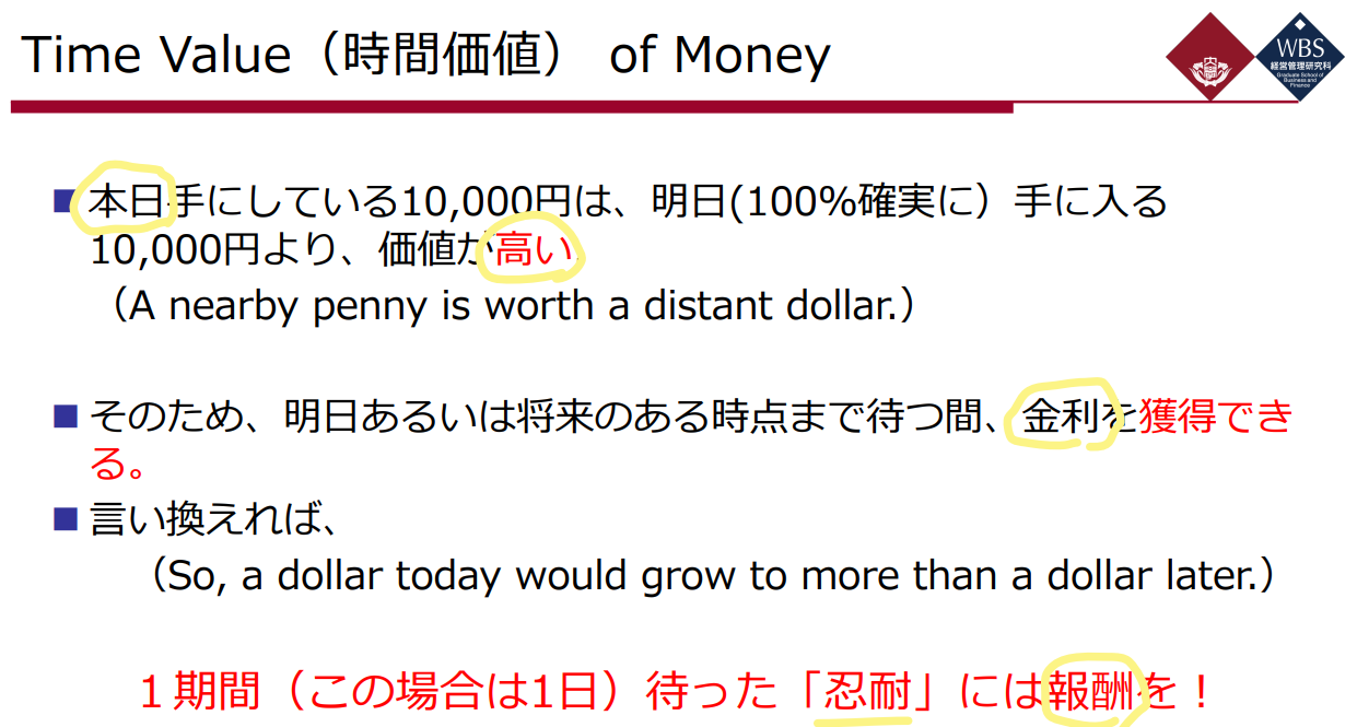 오늘의 10,000엔은 내일의 10,000엔보다 가치가 높다.