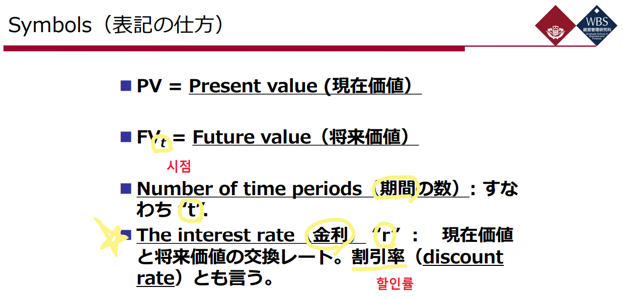r은 금리, 할인율 (현재가치와 미래가치의 교환비율)