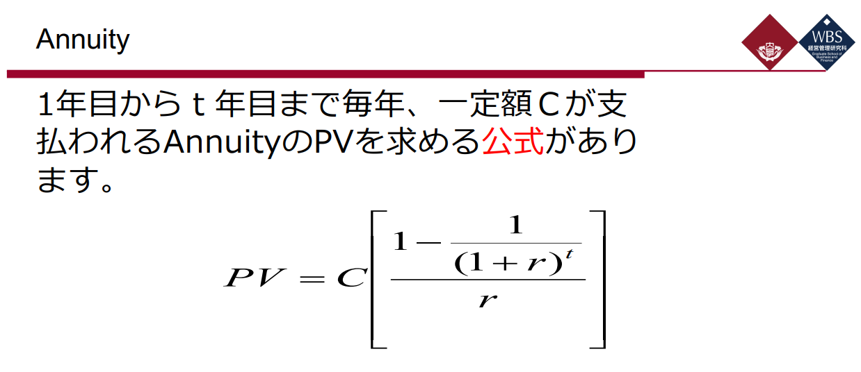 PV = C [ {1 - 1 / (1 + r)^t } / r ]