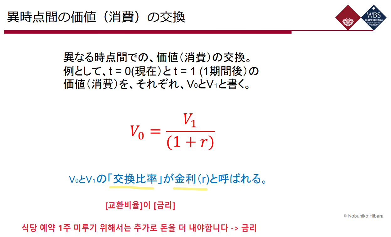 현대의 가치와 미래의 가치의 [교환비율]을 금리(r)이라고 부름