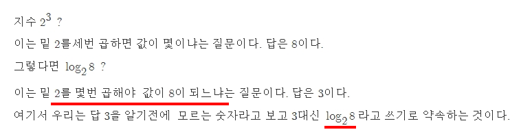 예를 들어 2를 몇 번 곱해야 8이 나올까요 라는 질문을 줄이면