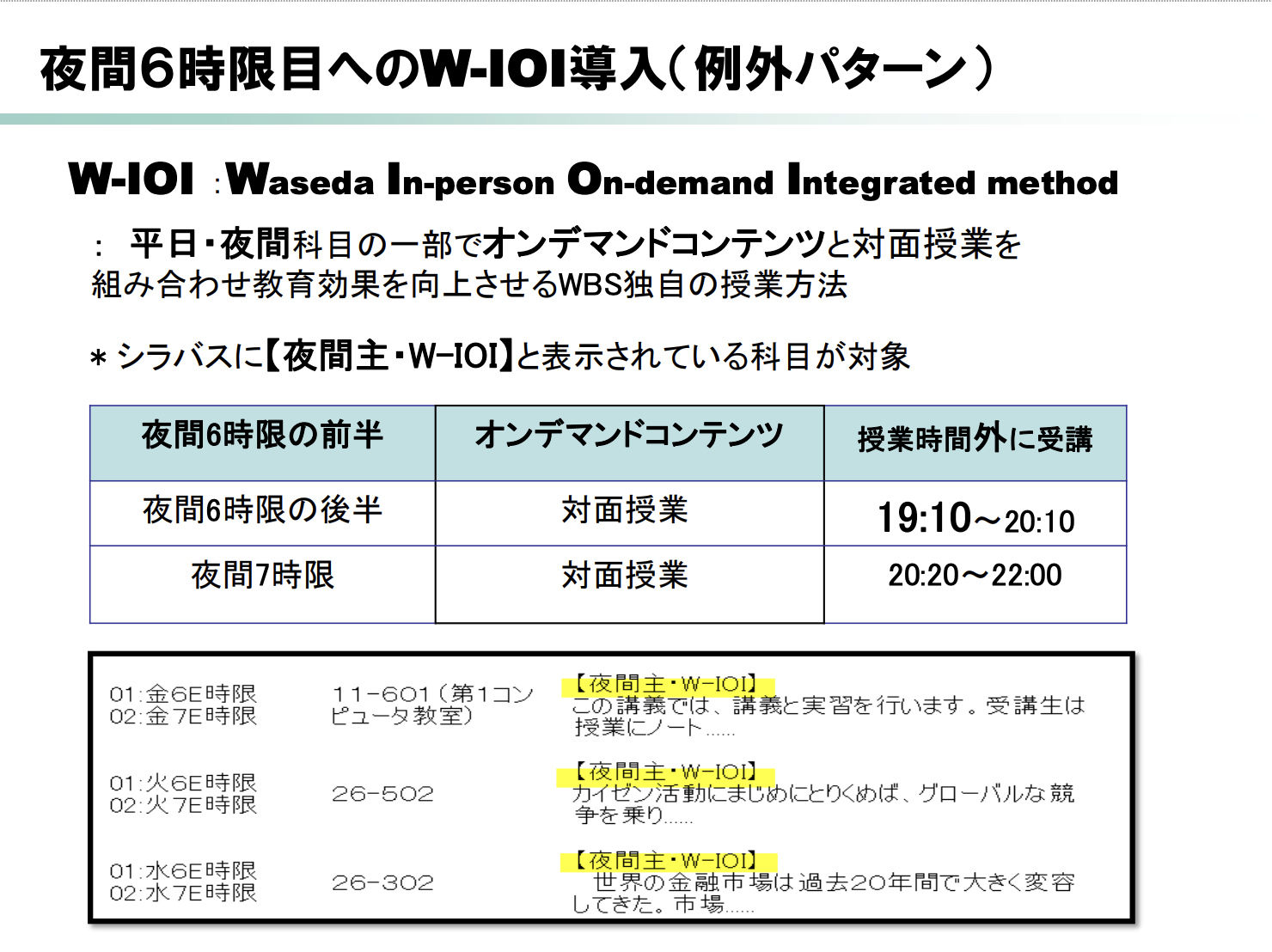 Waseda In-person On-demand Integrated method