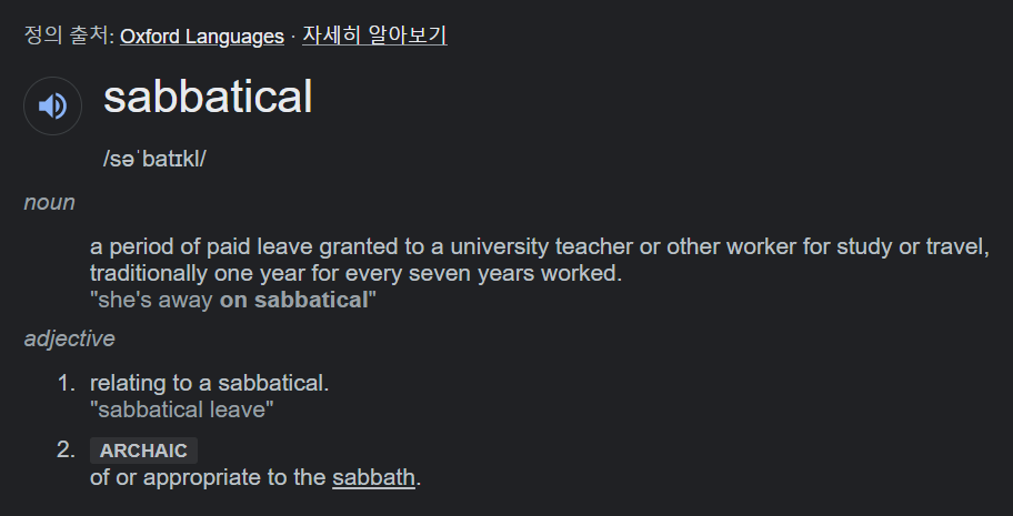 서버티컬이라는 표현을 많이 쓰는데 안식년인것 같다.