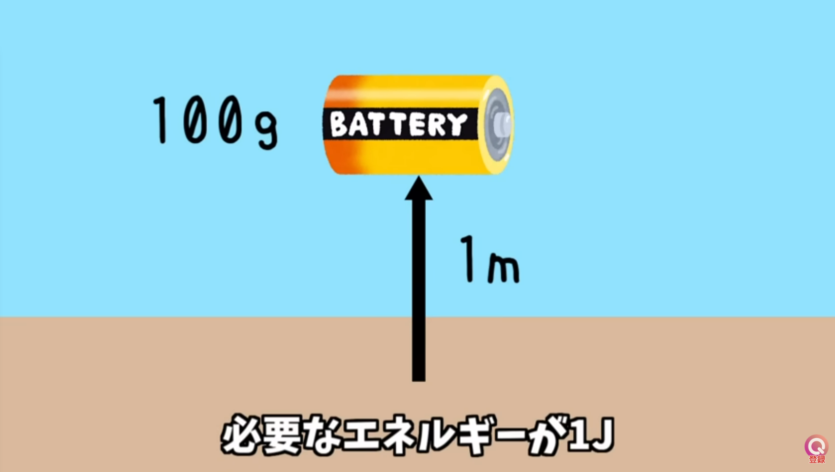 1J은 건전지 1개(100g)을 1m 들어올리는데 필요한 힘