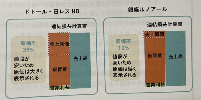 단가가 낮은 도토루의 원가율은 39%, 단가가 높은 루노아루는 12%
