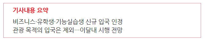 장기 주재원 비자에 대해서는 승인하는 것으로 검토 중이라는 기사만 나왔다.