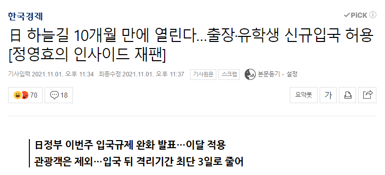 日 하늘길 10개월 만에 열린다…출장·유학생 신규입국 허용 [정영효의 인사이드 재팬]
