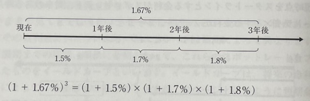 1년물의 할인채로 3번 투자한 경우의 수익률이 같아지도록 금리재정이 발생한다.