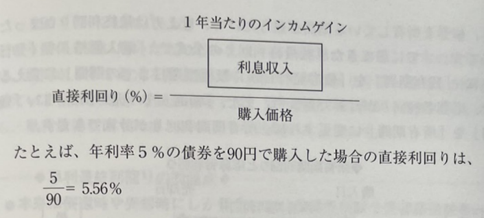 예를 들어, 연이율 5%의 채권을 90엔에 구입한 경우의 직접수익률는,