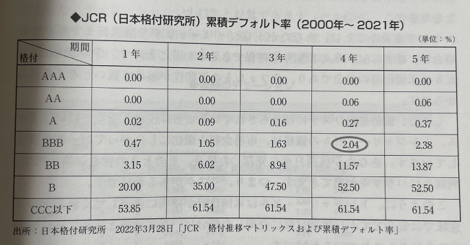 예를 들어, BBB의 등급의 회사가 4년 내 Default 할 확률은 2.04%
