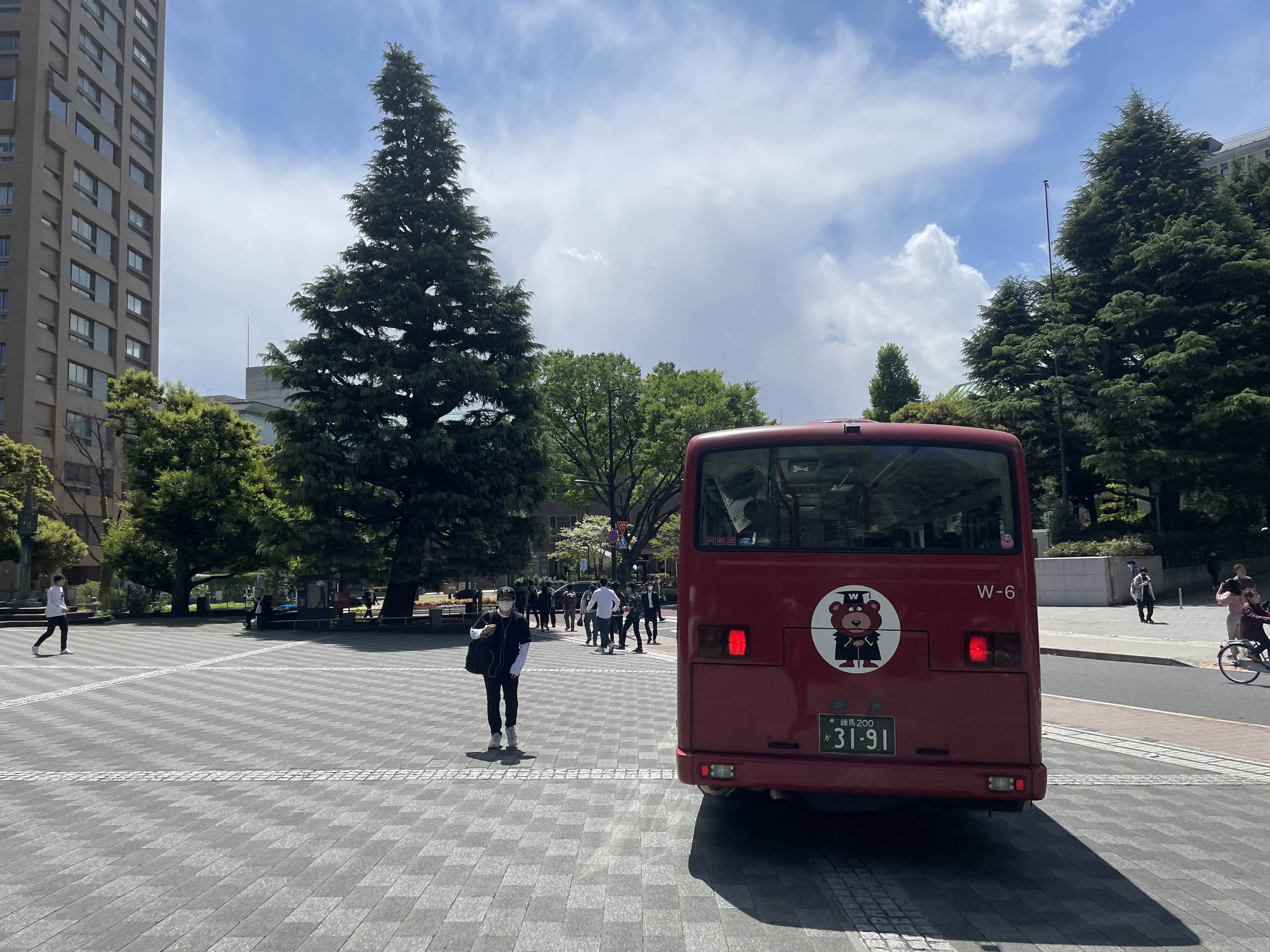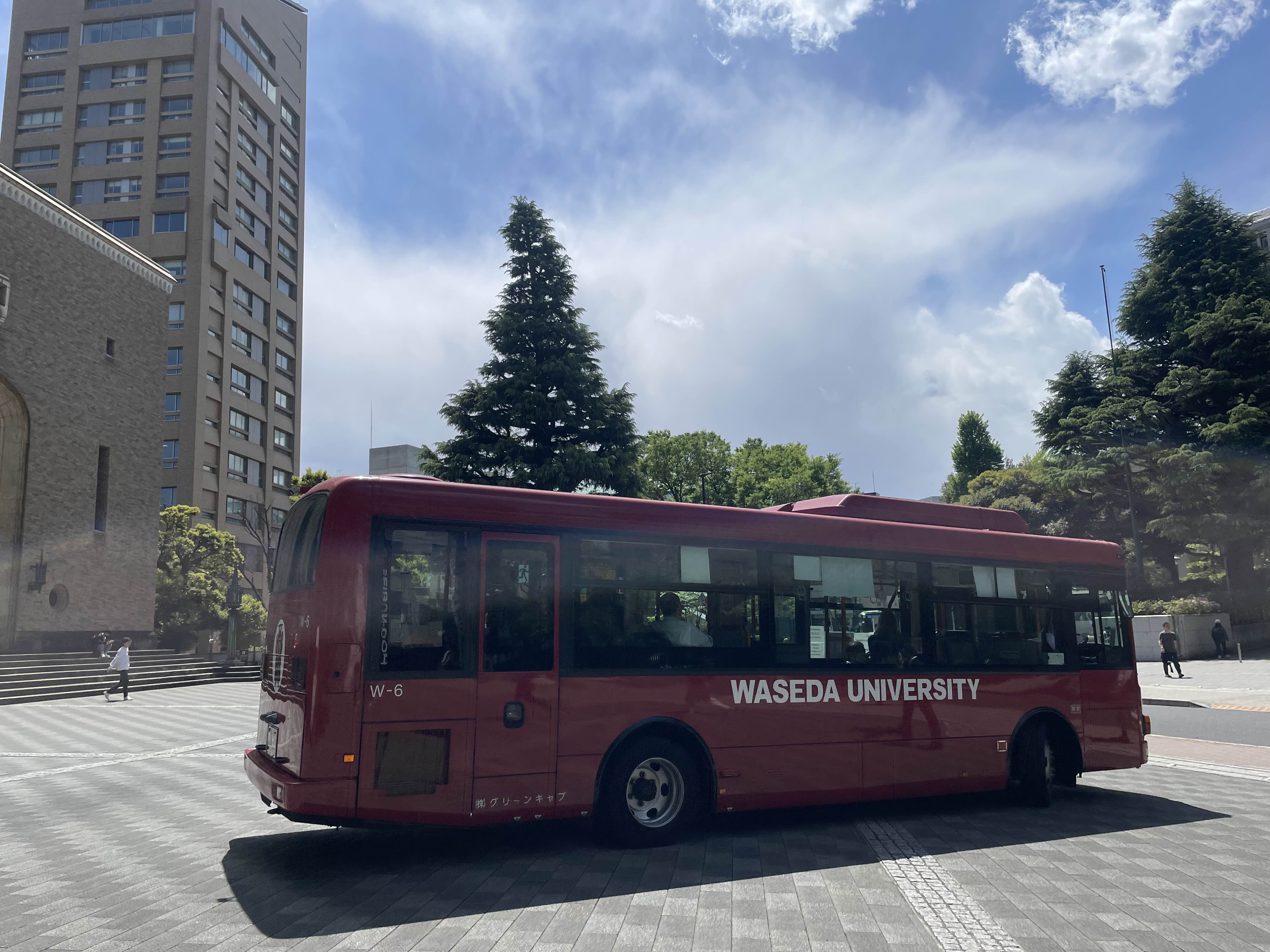 바로 앞에 보이는 와세다 버스