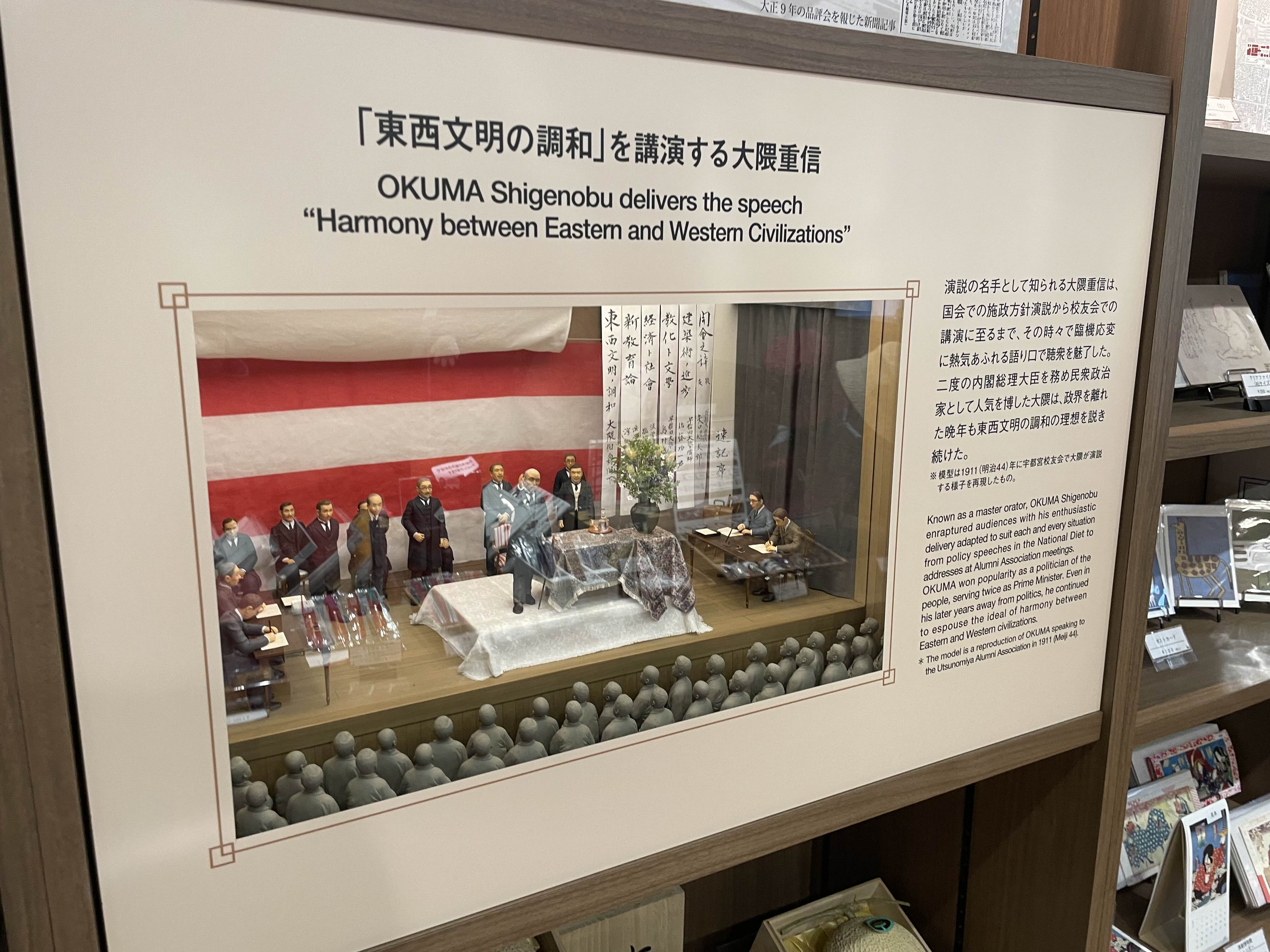 이곳은 오쿠마 시게노부 총장의 동상 모양의 기념품들도 많이 판다.